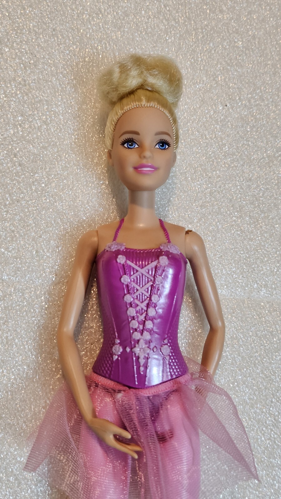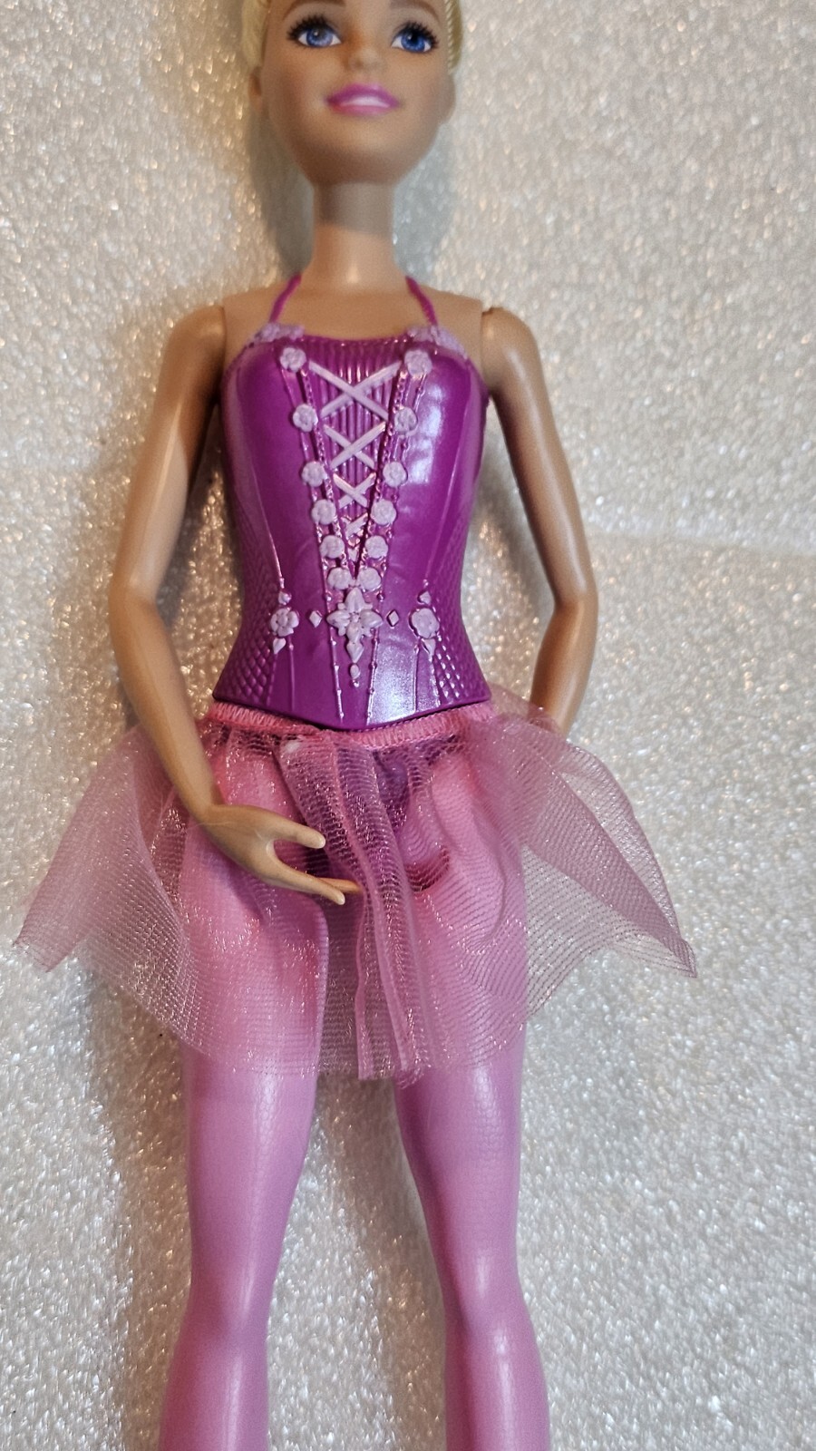 Barbie Barbie Bailarina ¡Dalo todo en el escenario con las muñecas Barbie Bailarina! Con un aspecto clásico de bailarina, cada muñeca viste un corpiño con encaje y tirantes delicados y un tutú de quita y pon transparente, y tiene los pies en puntillas. El look lo completa un elegante moño. Estas impresionantes bailarinas tienen brazos en pose de ballet y están disponibles en tres colores: rosa, morado y lila. ¡Ha llegado el momento de subir al escenario y estas bailarinas están listas para convertirse en el centro de atención! Los colores y la decoración del juguete pueden ser distintos de los mostrados. Las muñecas no pueden tenerse en pie por sí solas. Se venden por separado y están sujetas a disponibilidad. A partir de 3 años.