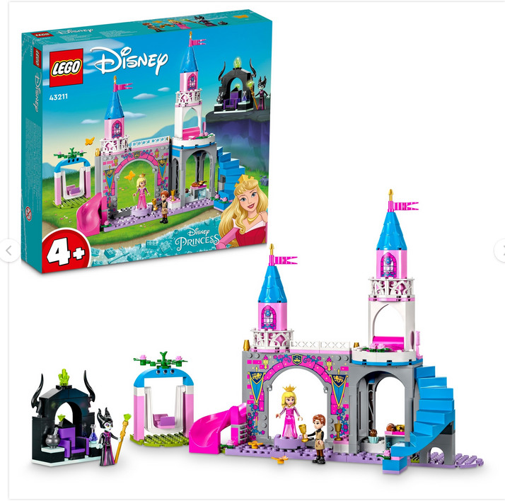 LEGO Juguete de Construcción Castillo de Aurora y Trono de Maléfica LEGO Disney Princesas Ilusiona a tu peque de 4 años o más y contribuye a mejorar sus habilidades motoras, sociales y emocionales con el set de construcción LEGO | Disney Castillo de Aurora (43211). Incluye un encantador castillo de juguete para construir en colores rosa y azul con tobogán, pista de baile giratoria y escalera, 2 modelos de construcciones más pequeños y 3 mini muñecas de personajes Disney.Este Castillo de Aurora inspirado en la película ''La Bella Durmiente'' de Disney incluye una plataforma giratoria para bailar, cocina, balcón y una alcoba, y cuenta con las 3 mini muñecas LEGO Disney de Aurora, Philip y Maléfica. Para más diversión los niños podrán construir en el exterior un columpio y el trono de Maléfica. Los peques se lo pasarán en grande recreando distintas escenas de la película y explorando el castillo en compañía de Aurora y Philip, para ello podrán usar los accesorios para muñecas cómo un peine, pastelitos y copas doradas. Construye, juega e imaginaLos prácticos ladrillos para principiantes de este juguete de construcción proporcionan a los peques una sólida base para empezar a construir. Cada bolsa de ladrillos LEGO contiene un personaje para que puedan jugar al instante, incluso sin haber terminado el set. Además, con la app LEGO Builder construir se convertirá en una intuitiva aventura gracias a las divertidas herramientas digitales. Este juguete de princesas para construir ofrece a los adultos la oportunidad de compartir divertidos ratos con su peque y trae instrucciones en imágenes fáciles de seguir para los que todavía están aprendiendo a leer, ¡será un increíble regalo de cumpleaños o en cualquier ocasión para los amantes de las princesas Disney y las películas!El castillo de Disney de juguete para construir mide aproximadamente 27 cm de alto, 38 cm de ancho y 11 cm de profundo. Contiene 187 piezas.¡Advertencia! Riesgo de asfixia. Partes pequeñas y bolas pequeñas. No apto para niños menores de 3 años.Contiene 187 piezas. Descubre más de LEGO
