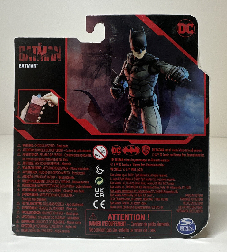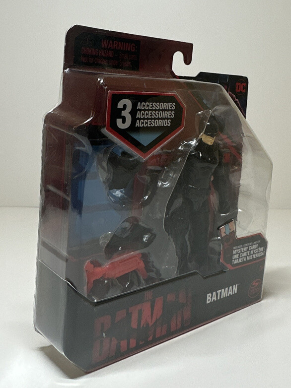 Spin Master Figura colección The Batman Movie DC Cómics Spin Master Descripción¡Crea tus propias aventuras épicas de Batman con las figuras de acción de Batman de 4 pulgadas! ¡Cada figura de acción cuenta con 11 puntos de articulación, una capa de tela y un estilo de película detallado que da vida a tus figuras favoritas de Batman! ¡Revela la carta misteriosa y equipa a Batman con los 3 accesorios incluidos! A los fanáticos de Batman y DC de todas las edades les encantan las figuras de acción, los juguetes y los sets de juego de Batman, ¡lo que los convierte en una gran idea para un regalo! ¡Involucra tu imaginación y crea tus propias batallas épicas! Con una variedad de figuras para coleccionar de la película de Batman, ahora puedes expandir tu colección de figuras de acción de Batman con Batman, Selina Kyle, The Penguin y más (cada uno se vende por separado). ¡Colecciona todos tus personajes favoritos de La película de Batman y da vida a tus momentos favoritos de la película de Batman con las figuras de acción de Batman de 4 pulgadas y protege Gotham City!